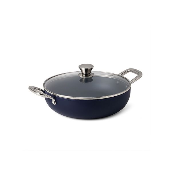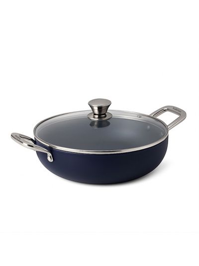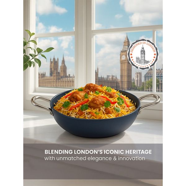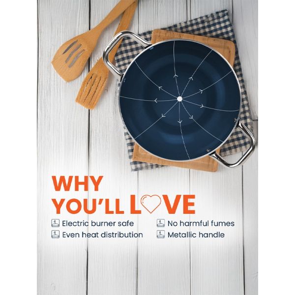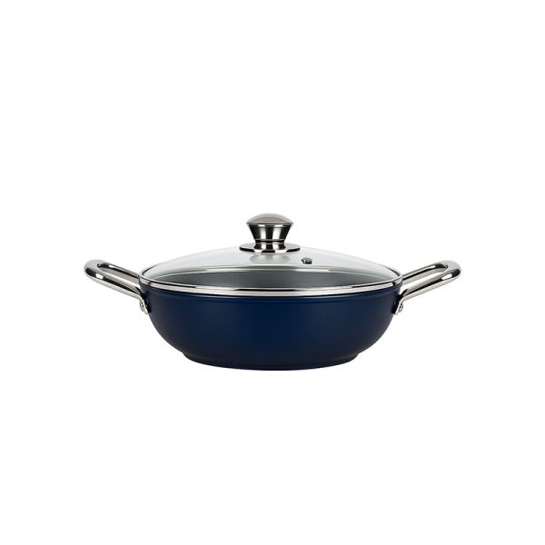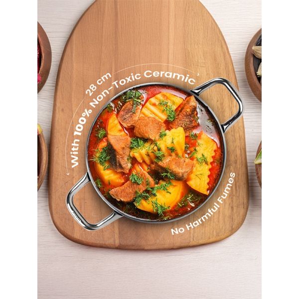 Habitat Ceramic Kadai with Stainless Steel Handle & Glass Lid – 28cm Non-Stick Kadai for Stovetop Cooking