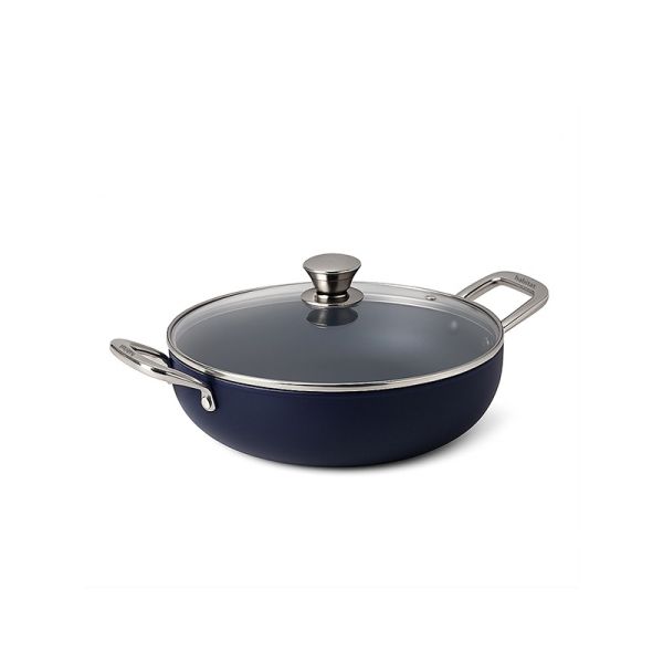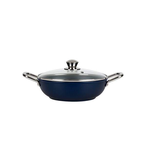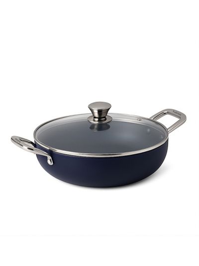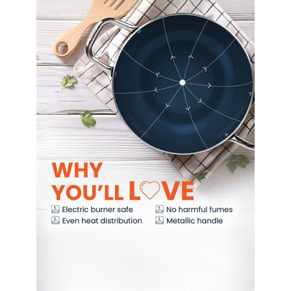 Habitat Ceramic Kadai with Stainless Steel Handle & Glass Lid – 24cm Non-Stick Kadai for Stovetop Cooking