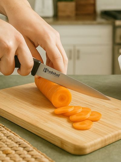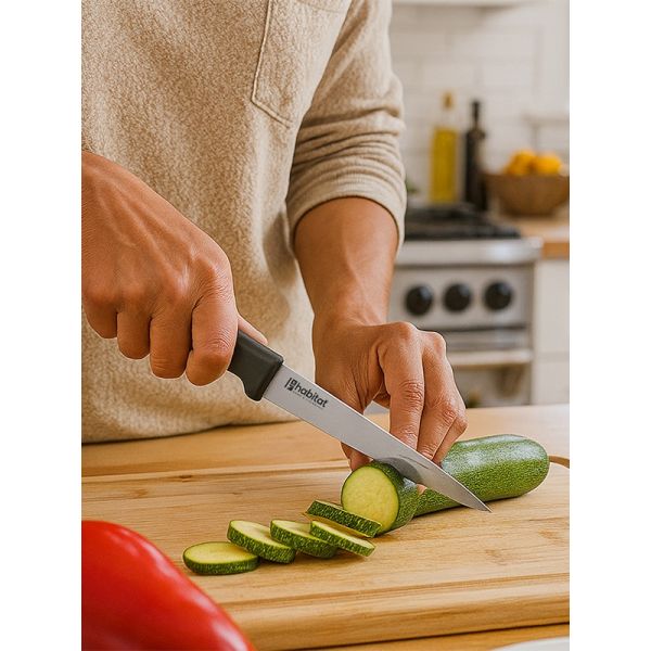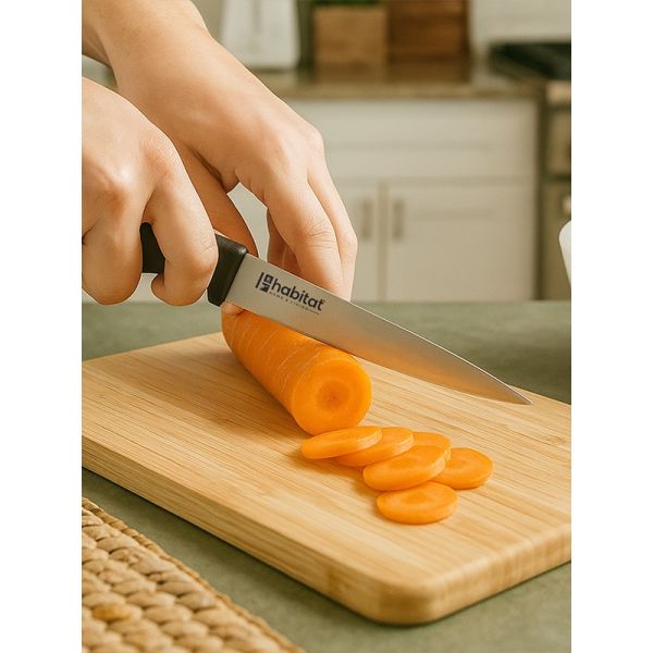 HABITAT All-Purpose Knife is a versatile kitchen tool designed for everyday cutting tasks, including slicing, chopping, and trimming fruits, vegetables, and meats. The sharp stainless steel blade ensures precision and durability, while the ergonomic handle offers a comfortable and secure grip for safe, controlled use. Lightweight, balanced, and reliable, this knife is an essential addition to any kitchen, combining efficiency with ease of handling.