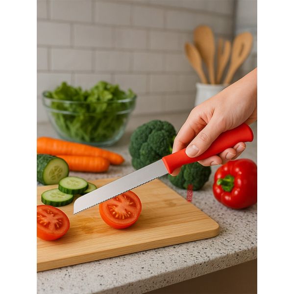 Habitat Basic Smart Kitchen Knife – Sharp Red Knife for Chopping Vegetables and Fruits