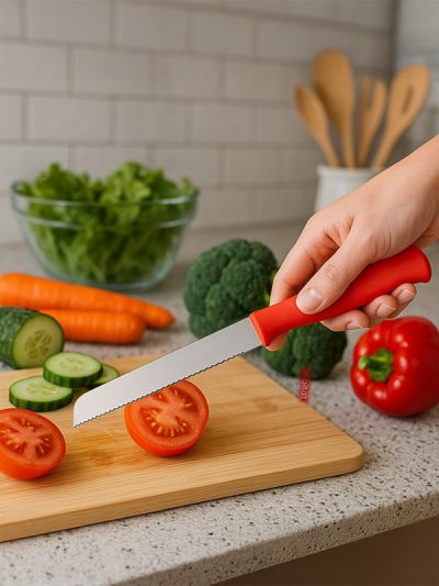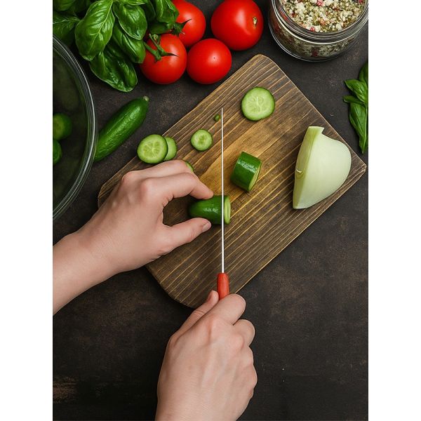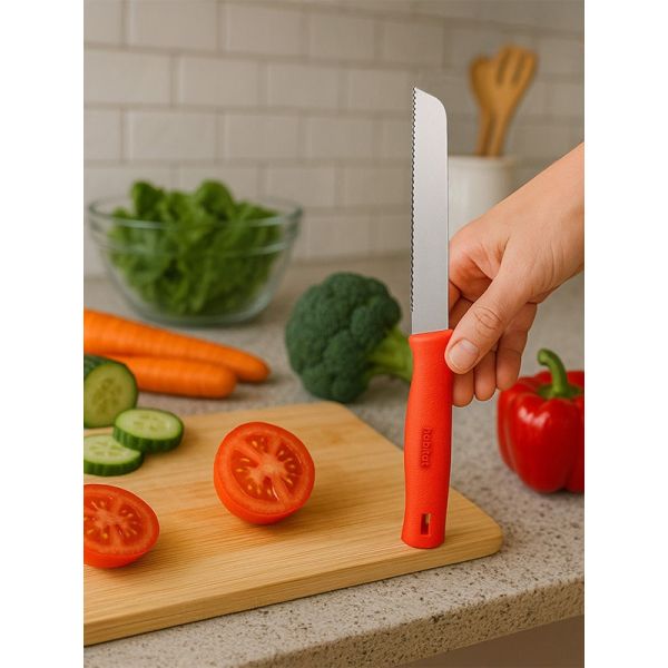HABITAT Basic SMART Vegetable Knife – Red is a handy and durable kitchen tool designed for chopping, slicing, and dicing vegetables with ease. The sharp stainless steel blade ensures precision and efficiency, while the ergonomic red handle provides a secure, comfortable, and non-slip grip for safe use. Lightweight, reliable, and practical, this vegetable knife is an essential addition to any kitchen.