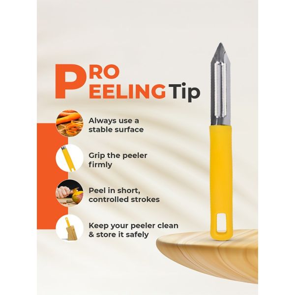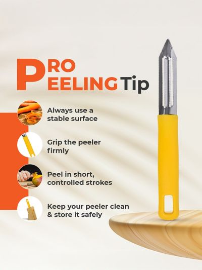 HABITAT Basic SMART Vegetable Peeler – Yellow is a handy and efficient kitchen tool designed for effortless peeling of vegetables and fruits. The sharp stainless steel blade ensures smooth, precise peeling, while the ergonomic yellow handle provides a comfortable, secure, and non-slip grip. Durable, lightweight, and easy to use, this vegetable peeler is an essential tool for every kitchen.