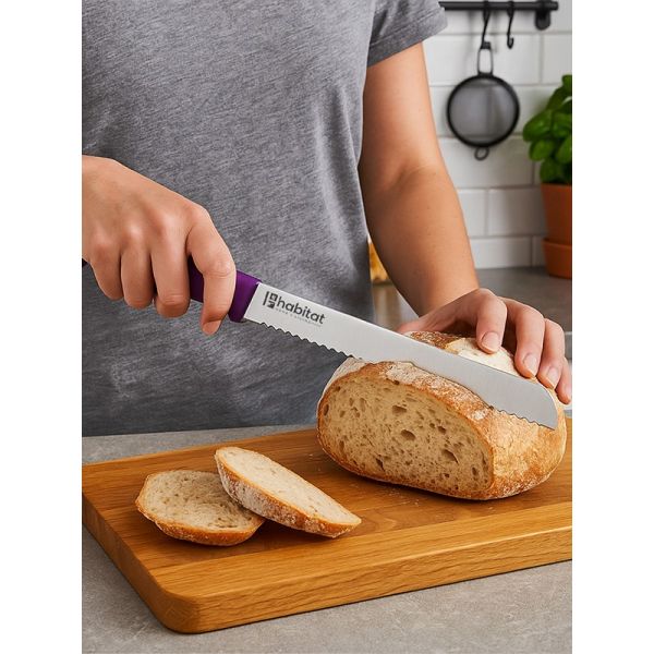 HABITAT Bread Knife with PP Handle is designed for effortlessly slicing through bread, cakes, and pastries without crushing or tearing. The serrated stainless steel blade ensures clean, precise cuts every time, preserving the texture and freshness of baked goods. Its ergonomic polypropylene (PP) handle provides a comfortable, secure, and non-slip grip for safe and controlled use. Durable, practical, and reliable, this bread knife is an essential tool for every kitchen.