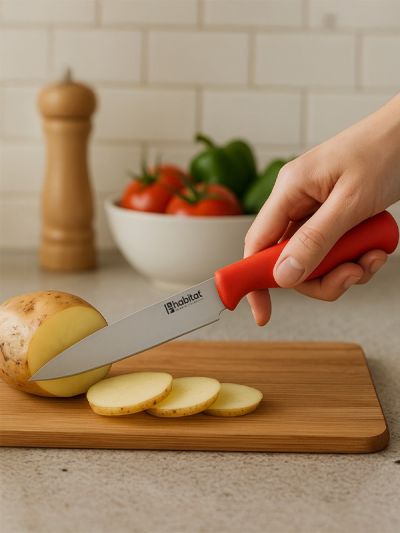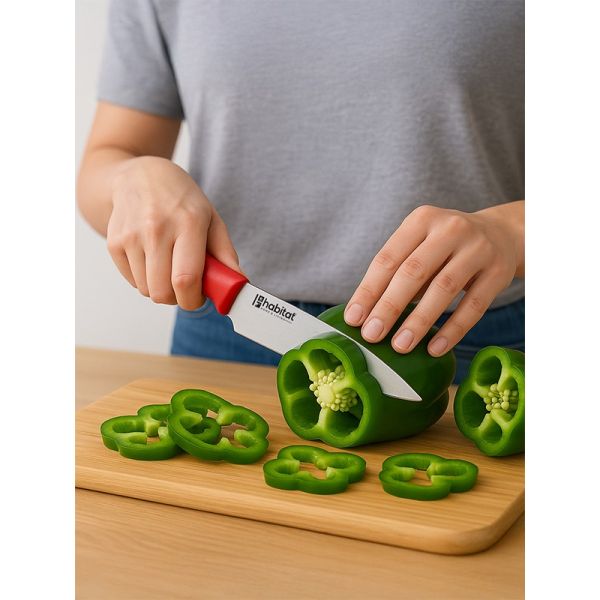 HABITAT Chef’s Knife with Laser Logo is a high-quality, versatile kitchen knife designed for chopping, slicing, dicing, and mincing a variety of ingredients with precision. The stainless steel blade ensures long-lasting sharpness and durability, while the laser-etched logo adds a touch of style and authenticity. Its ergonomic handle provides a comfortable, secure, and non-slip grip, making it ideal for both home cooks and professional chefs. Durable, efficient, and stylish, this chef’s knife is a must-have for every kitchen.