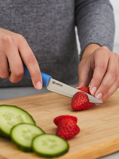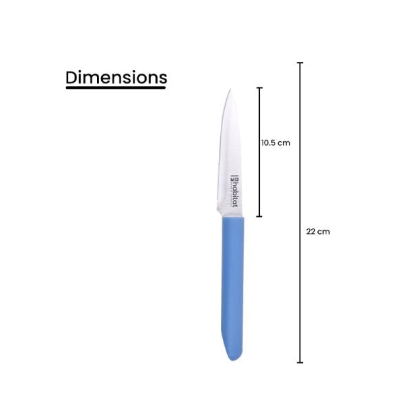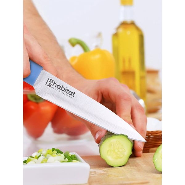 HABITAT 3.5" Paring Knife with PP Handle is a versatile kitchen essential, ideal for everyday cutting, peeling, trimming, and garnishing tasks. The sharp stainless steel blade ensures precision and smooth performance, making it perfect for handling fruits, vegetables, and other small ingredients. Its ergonomic polypropylene (PP) handle offers a secure, comfortable, and non-slip grip for better control and safety. Durable, lightweight, and easy to use, this paring knife is designed to deliver efficiency and reliability in every kitchen.