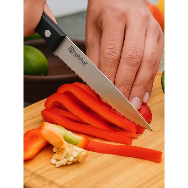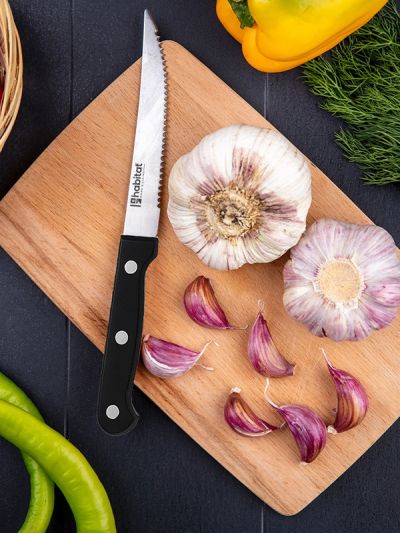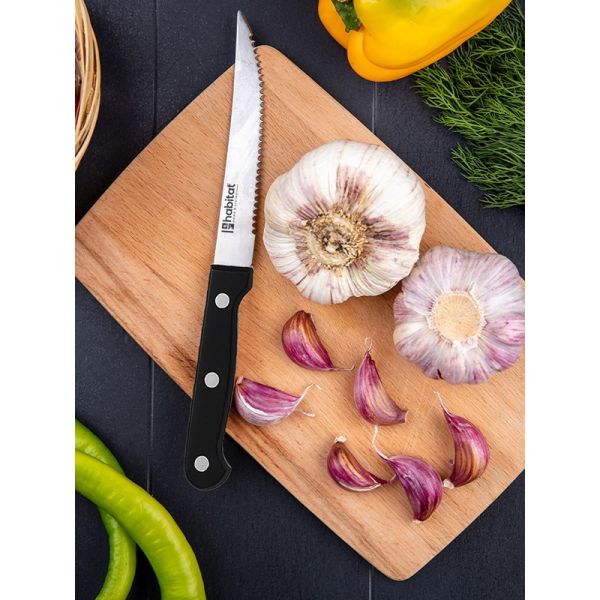 HABITAT 4.5" Steak Knife with Bakelite Handle is designed to deliver smooth, precise cuts through steaks, chops, and other meats without tearing or shredding. The  stainless steel blade offers long-lasting sharpness and durability, ensuring effortless slicing at the table. Its ergonomic Bakelite handle provides a comfortable, heat-resistant, and secure grip, adding both style and functionality to your dining experience. Perfect for everyday meals or special occasions, this steak knife combines performance, durability, and elegance.