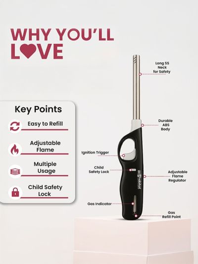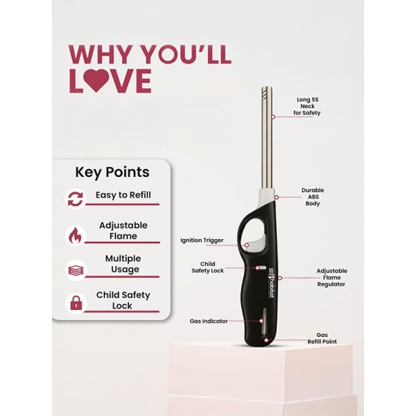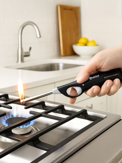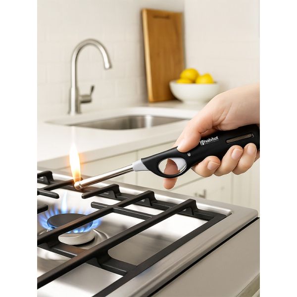 HABITAT Flame Gas Lighter – Black is a safe and convenient tool designed for effortlessly igniting gas stoves, candles, barbecues, and more. The ergonomic design ensures a comfortable, secure grip, while the reliable ignition mechanism provides quick and consistent flames. Durable, stylish, and easy to use, this black gas lighter is an essential addition to any kitchen or outdoor setup.