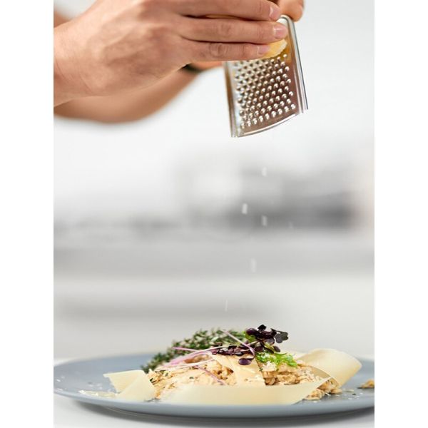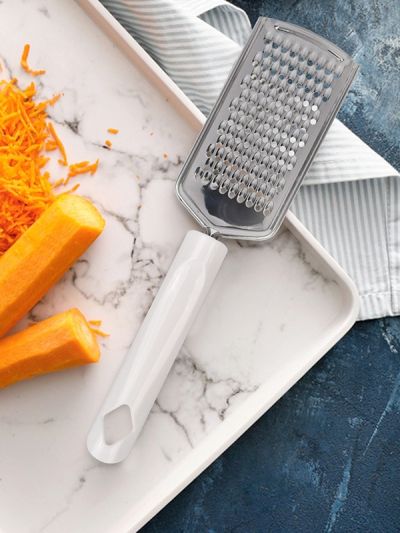 HABITAT Diamond Hand Grater SS with PP Handle is a versatile kitchen tool designed for efficiently grating vegetables, fruits, cheese, and more. The stainless steel diamond-shaped grating surface ensures quick, precise, and consistent results with minimal effort. Its ergonomic polypropylene (PP) handle provides a comfortable, secure, and non-slip grip for safe handling. Durable, lightweight, and practical, this hand grater is an essential tool for every kitchen.