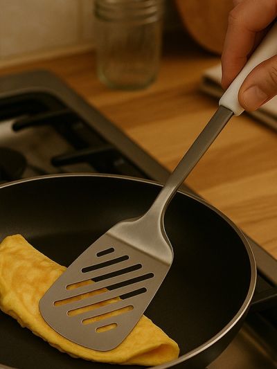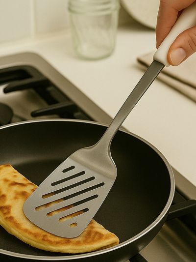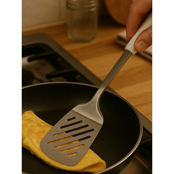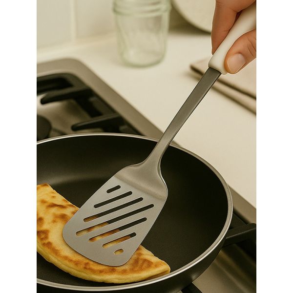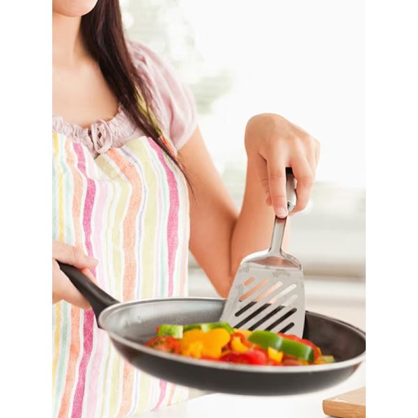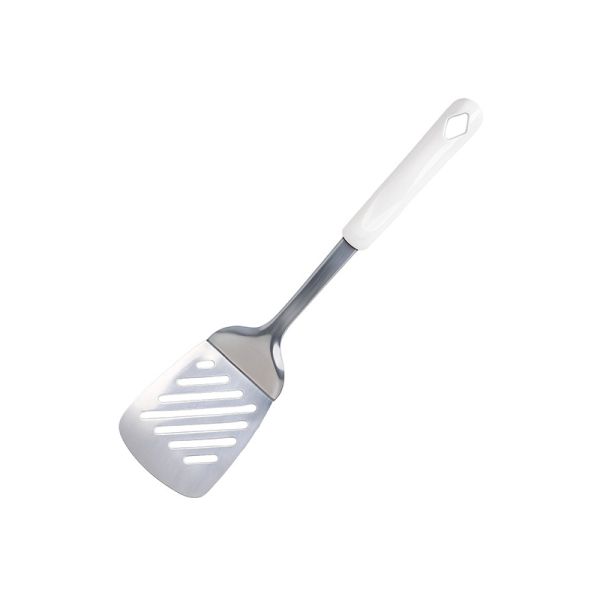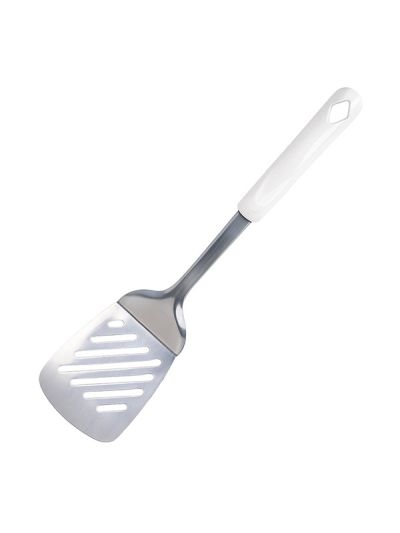 HABITAT Diamond SS Slotted Turner with PP Handle is a versatile kitchen utensil designed for flipping, turning, and serving foods like pancakes, burgers, and fried items. The stainless steel slotted head allows excess oil or liquid to drain efficiently, while the ergonomic polypropylene (PP) handle provides a comfortable, secure, and non-slip grip. Durable, practical, and easy to use, this slotted turner is an essential tool for every kitchen.