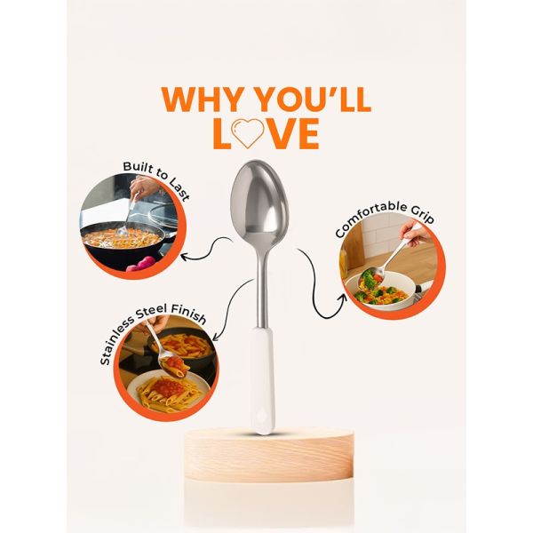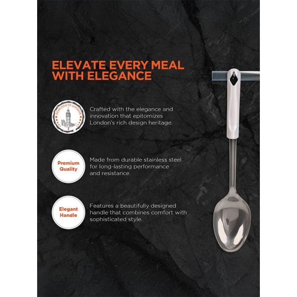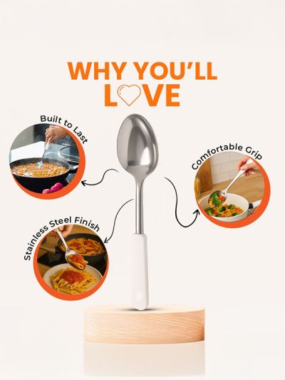 HABITAT Diamond SS Solid Spoon with PP Handle is a durable and versatile kitchen utensil designed for serving soups, stews, curries, and other dishes with ease. The stainless steel solid head ensures strength and long-lasting performance, while the ergonomic polypropylene (PP) handle provides a comfortable, secure, and non-slip grip. Lightweight, reliable, and practical, this solid spoon is an essential tool for every kitchen.