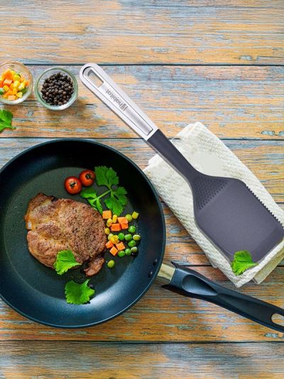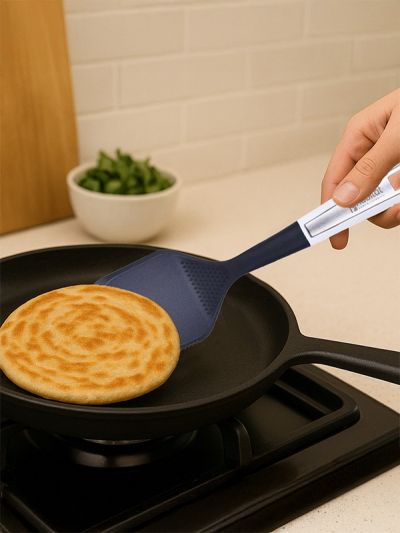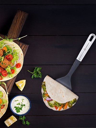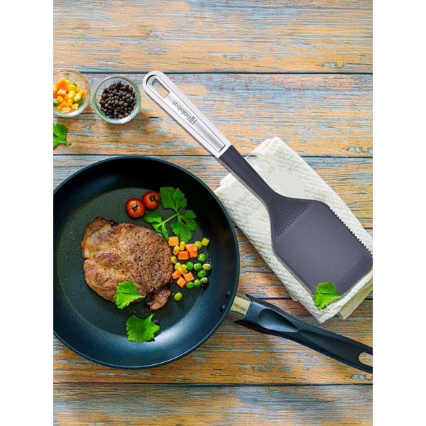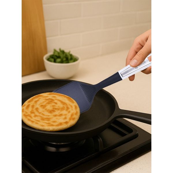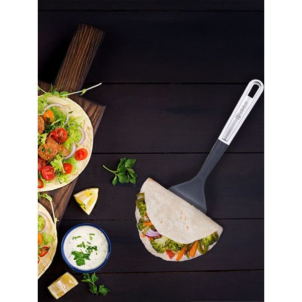 HABITAT Nylon Chinese Turner with S/S Insert is a versatile kitchen utensil designed for flipping, turning, and serving foods like stir-fries, pancakes, and grilled items. The nylon body ensures heat resistance and non-scratch performance on cookware, while the stainless steel (S/S) insert adds strength and durability. Its ergonomic handle provides a comfortable, secure, and non-slip grip, making cooking efficient and safe. Durable, practical, and reliable, this Chinese turner is an essential tool for every kitchen.