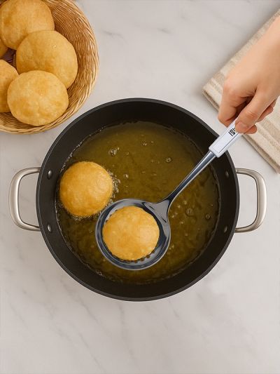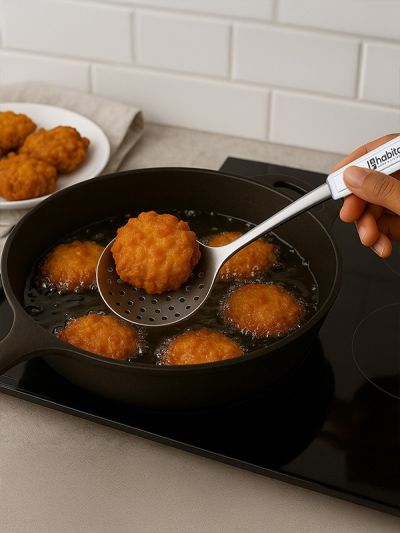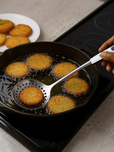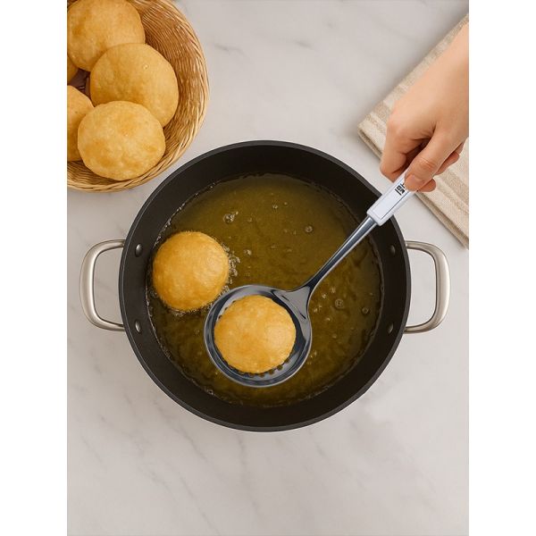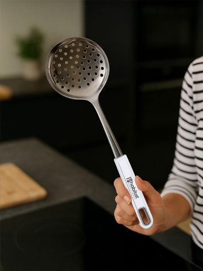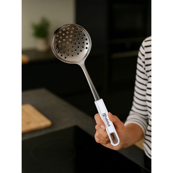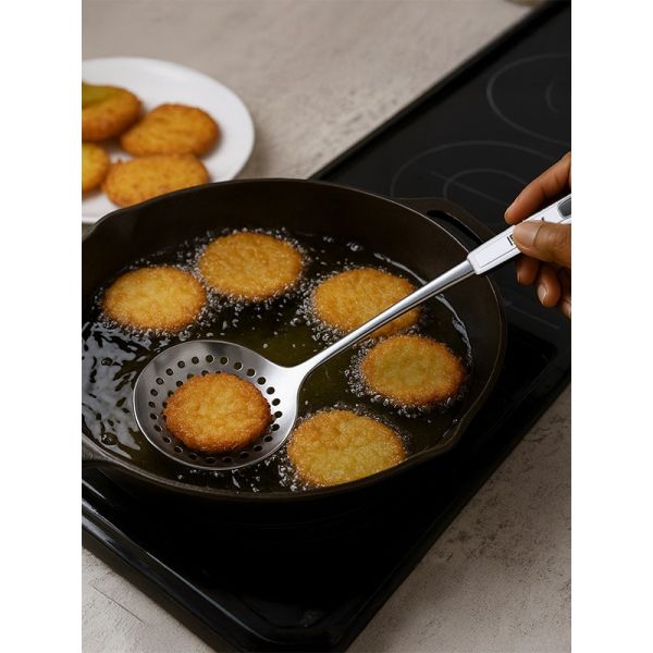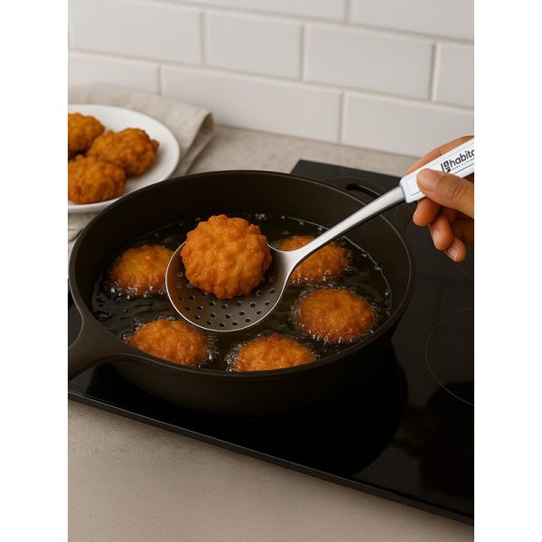 HABITAT S/S Skimmer with S/S Insert is a versatile kitchen utensil designed for removing fried foods, blanching vegetables, and skimming liquids efficiently. The stainless steel perforated head and insert ensure durability, strength, and long-lasting performance. Its ergonomic handle provides a comfortable, secure, and non-slip grip for safe and easy use. Practical, reliable, and essential, this skimmer is a must-have tool for every kitchen.