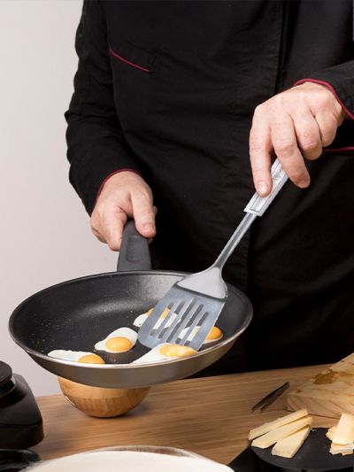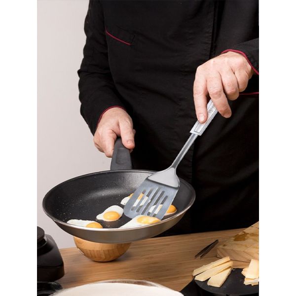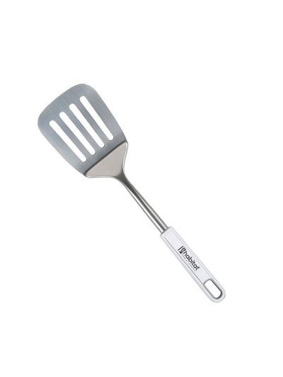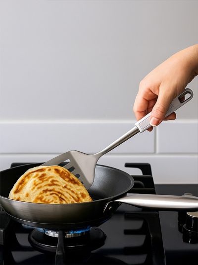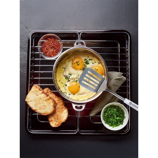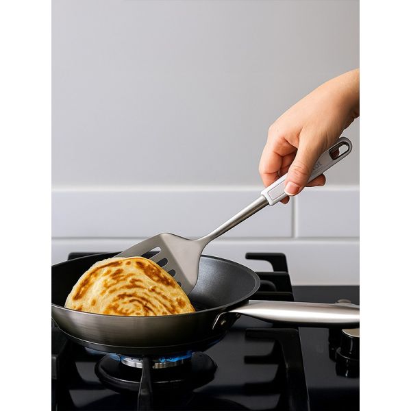 HABITAT S/S Slotted Turner with S/S Insert is a versatile kitchen utensil designed for flipping, turning, and serving foods like pancakes, burgers, and fried items. The stainless steel slotted head and insert allow efficient draining of excess oil or liquid while ensuring durability and strength. Its ergonomic handle provides a comfortable, secure, and non-slip grip, making cooking safe and effortless. Durable, practical, and reliable, this slotted turner is an essential tool for every kitchen.