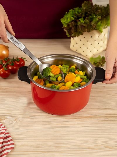 HABITAT S/S Solid Spoon with S/S Insert is a durable and versatile kitchen utensil designed for serving soups, stews, curries, and other dishes with ease. The stainless steel solid head and insert ensure strength, long-lasting performance, and efficient serving. Its ergonomic handle provides a comfortable, secure, and non-slip grip, making it practical and safe to use. Reliable, functional, and essential, this solid spoon is a must-have for every kitchen.