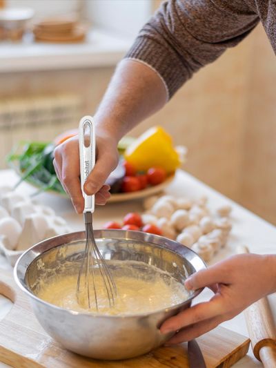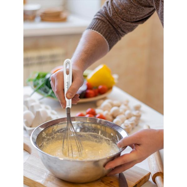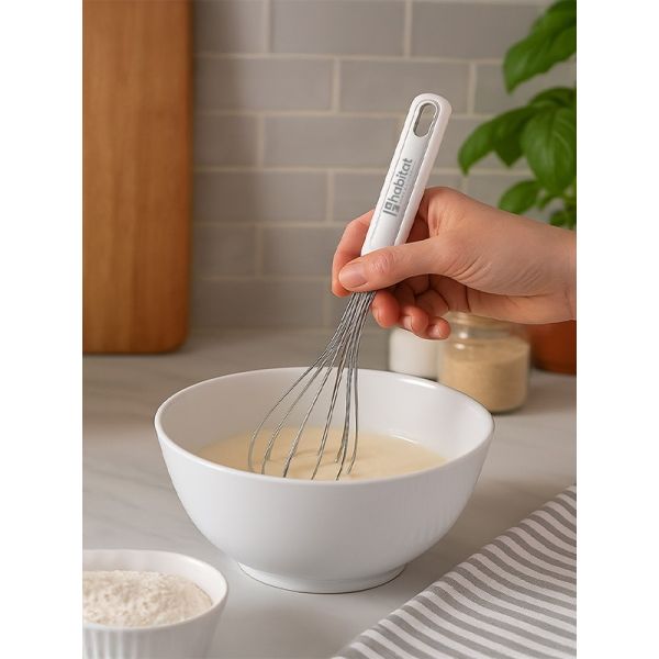 HABITAT SS Whisk with SS Insert is a versatile kitchen tool designed for whipping, beating, and mixing eggs, batters, sauces, and creams with ease. The stainless steel wires and insert ensure durability, strength, and efficient performance, while the ergonomic handle provides a comfortable, secure, and non-slip grip. Reliable, practical, and easy to use, this whisk is an essential tool for every kitchen.
