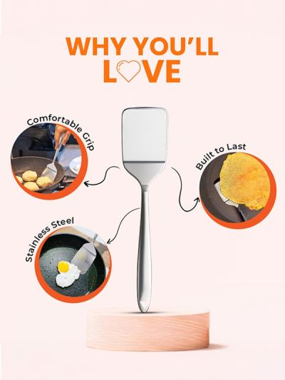 HABITAT Basic SMART Newport Turner is a versatile kitchen utensil designed for flipping, turning, and serving foods like pancakes, burgers, and grilled items with ease. Made from durable, heat-resistant materials, it ensures long-lasting performance and safe use on all types of cookware. The ergonomic handle provides a comfortable, secure, and non-slip grip, making cooking effortless and precise. Practical, reliable, and essential, this turner is a must-have tool for every kitchen.
