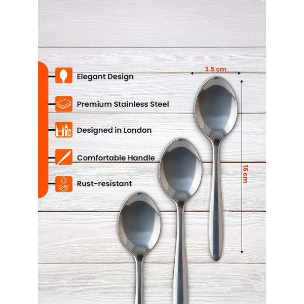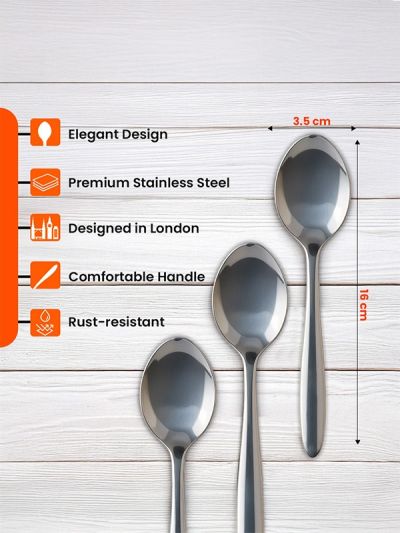 Habitat Basic Wilton Tea Spoon – Set of 3 Stainless Steel Spoons for Tea, Coffee, and Beverages